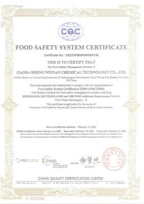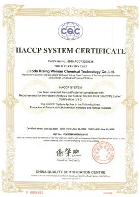 公司證書公司通過(guò)了ISO9001:2015、HACCP認(rèn)證和FSSC22000等質(zhì)量安全管理體系認(rèn)證。